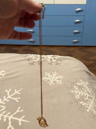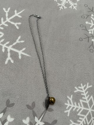 Deliziosa catenina con ciondolo a forma di boccino d'oro e piuma. - Ciondolo a forma di boccino d'oro. - Ciondolo a forma di piuma. - Catena color argento.