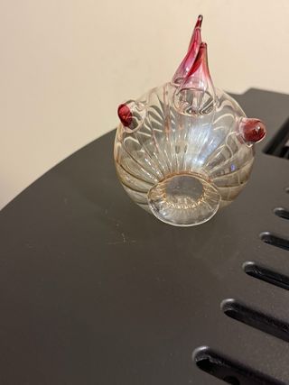 Deliziosa decorazione a forma di pesce, realizzata in vetro soffiato trasparente con dettagli rossi. - Design artistico e unico. - Dettagli in vetro rosso sulle pinne e sull'occhio. - Ideale come soprammobile o elemento decorativo.