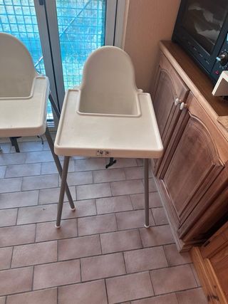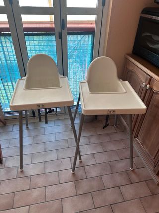 Vendo due seggioloni Ikea, ideali per i più piccoli. Sono pratici e facili da pulire. - Colore bianco/beige. - Vassoio incluso. - Struttura pieghevole.