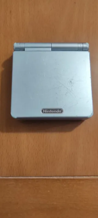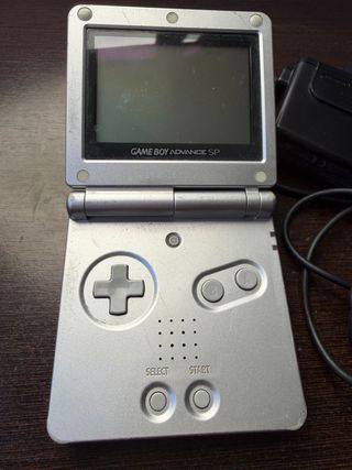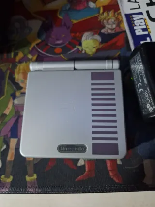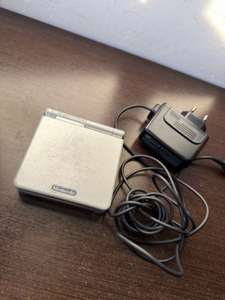 Console portatile Nintendo Game Boy Advance SP in colore argento, con il suo caricatore. Include caricatore originale.