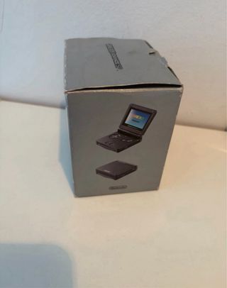 Questa è la scatola originale per la console Nintendo Game Boy Advance SP in colore nero. Conserva il design classico del marchio. Completamente originale - Scatola di cartone. Colore nero.