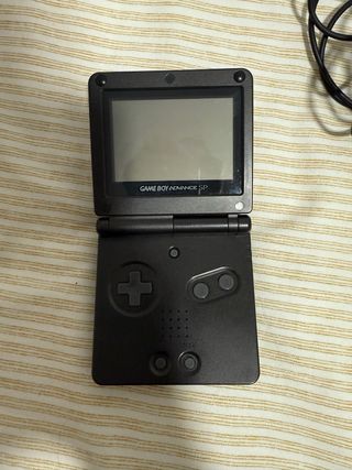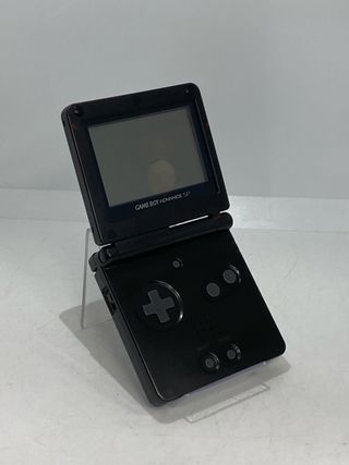 Console portatile Game Boy Advance SP in colore nero. Un classico per portare i tuoi giochi ovunque. Design pieghevole, schermo retroilluminato, pulsanti A e B, croce direzionale, pulsanti Select e Start.