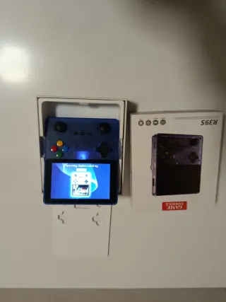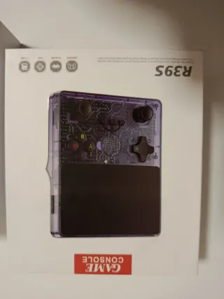 Console portatile per videogiochi. - Design compatto e moderno. - Colore blu e viola traslucido.