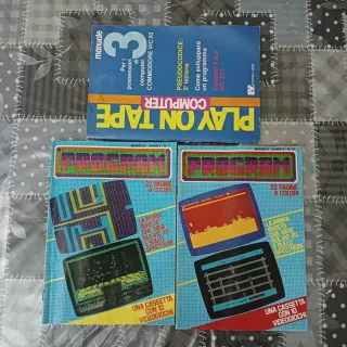 Riviste Vintage Per Commodore Vic20 e ZX Spectrum. Nello specifico: Program anno 1 n. 7 Program anno 3 n. 15 Play on tape manuale 3 Riviste originali che non hanno le cassette, quindi solo cartaceo.