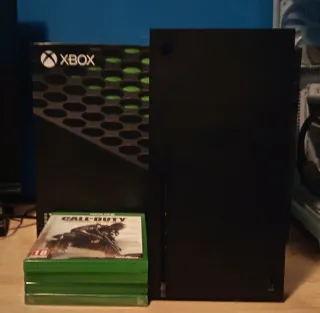 Console Xbox Series X. - Console, cavi e scatola originale, no controller. - Colore nero e verde. - 4 giochi: Mortal Kombat 11, Battlefield 1, NFS unbound e COD advanced warfare. La console è impolverata, ma non ha segni di usura. (Negoziabile)