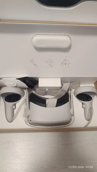 Meta Quest 2 con 128GB di spazio di archiviazione è perfetto, senza graffi e funziona perfettamente. Viene con un supporto premium più comodo di quello originale del marchio Transnovo. Tutto è incluso nella confezione originale con i due controller e tutto è in ordine.