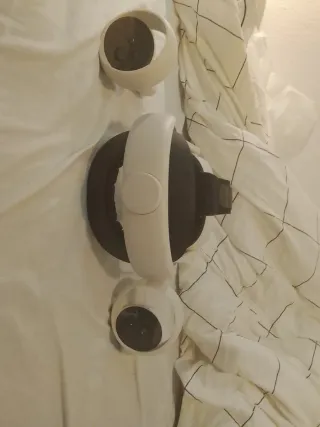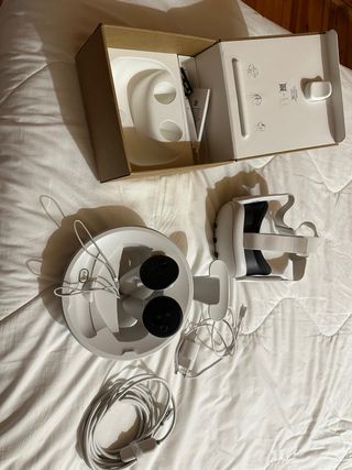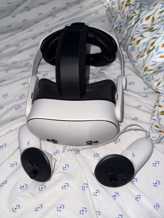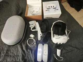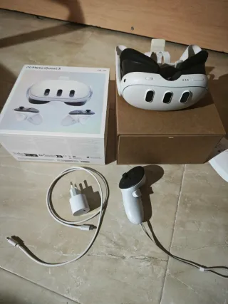 Meta Quest 3 in buone condizioni e funziona perfettamente, con scatola usurata e cinturino usato ma disinfettato con candeggina. Capacità di 512GB. Include la fattura originale. Manca il cordino di sicurezza del controller sinistro. Piccoli graffi sugli obiettivi quasi impercettibili. Vendo a un buon prezzo perché voglio comprare vestiti.