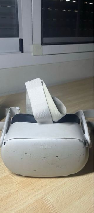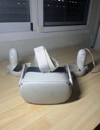 Vendo casco VR Meta Quest 2 con due controli. Colore bianco. Design ergonomico. Include cinghie regolabili.