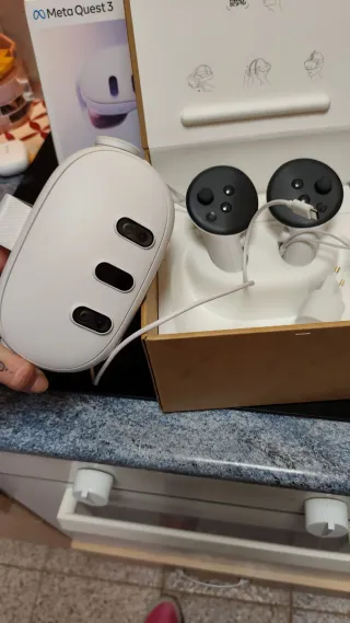 Meta Quest 3 512GB Mandos originali Touch Plus (a uno manca il cinturino, facilmente sostituibile). Caricatore ufficiale e originale INCLUSO. Scatola originale in perfetto stato. Il prodotto è ancora in garanzia META fino al 2 dicembre 2027 (ho la fattura). Utilizzo molto limitato, come nuovo (appena alcune ore totali). Lenti: Perfette, senza un solo graffio. Corpo: Stato eccellente. Presenta minimi segni di sfregamento sugli ancoraggi laterali del cinturino (ultime foto), totalmente invisibili quando si indossa il cinturino e non influiscono sul funzionamento.