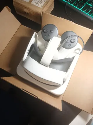 Cuffie VR Meta Quest 2 da 128GB con due controller e scatola originale. Tutto funziona perfettamente, senza difetti. I controller vengono consegnati con le batterie incluse. Non include il caricatore, ma si caricano con qualsiasi tipo C. Spedizioni rapide 📦