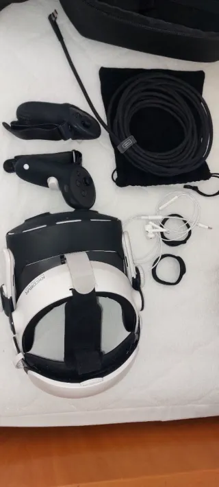 Visore comprato nel 2024 nuovo cambiata la batteria della console 2 mesi fa tutto perfetto, incluso di cavo di 4 metri. - Visore VR bianco. - Due controller inclusi. -Cabo 4 metri.