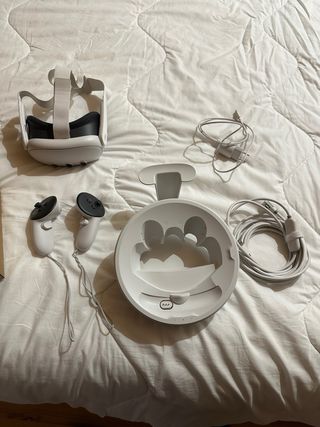 Si vende Meta Quest 3S con accessori, nuova per inutilizzo. Include due controller e supporto in silicone, cavo di ricarica e connessione al PC (VR), auricolari USB C, borsa da trasporto a tracolla, fascia per la testa KKCobvr, fascia originale e protezione per gli occhiali.
