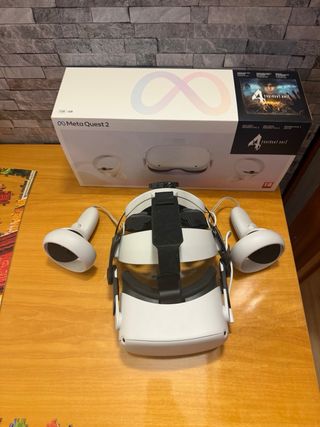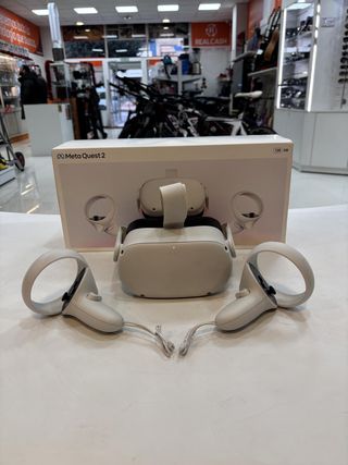 Meta Quest 2 in buone condizioni, pronta all'uso. Include due controller per un'esperienza di gioco completa. - Cuffie per realtà virtuale. - Due controller. - Con scatola.