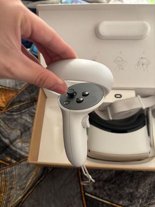 Vendo visore per realtà virtuale Meta Quest 2 con 64 GB di spazio di archiviazione. Include: 2 controller originali (funzionano perfettamente) Scatola originale Non include: caricabatterie e cavo (utilizza USB-C standard). Stato: Usato per i primi 3 anni; gli ultimi 2 sono stati conservati. Sensori e lenti in perfette condizioni, senza graffi. Estetica: Ciambella facciale deteriorata da pulizia intensa e velcro della fascia leggermente staccatosi. Entrambi i pezzi sono sostituibili (≈15 € ciascuno su Amazon). Per qualsiasi domanda, chiedi pure.
