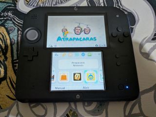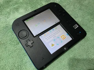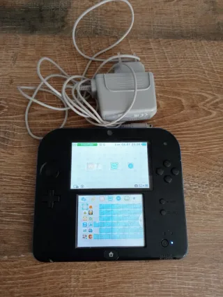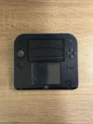 Console portatile Nintendo 2DS in colore nero. È un modello compatto e leggero, ideale da portare ovunque, compatibile con i giochi di 3DS, tutto in buone condizioni e funzionante. Include caricatore, pulsanti di controllo direzionale e analogico, schermo touch inferiore.