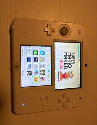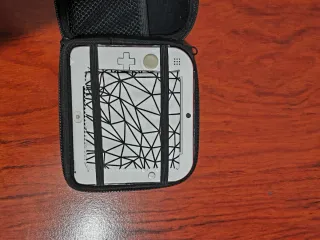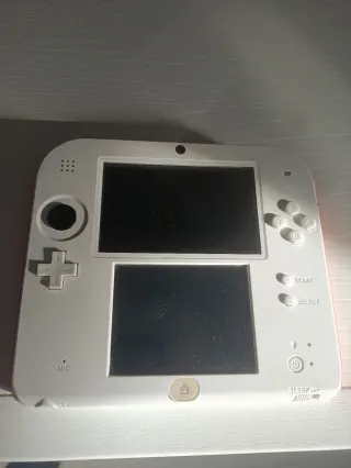Console portatile Nintendo 2DS in bianco. Design compatto e leggero. Schermo superiore e inferiore. Pulsanti di controllo direzionale e azione. Funziona perfettamente, manca solo il pennino. La custodia ha alcune imperfezioni visibili nelle foto. Include 4 giochi e caricatore, come mostrato nelle foto.
