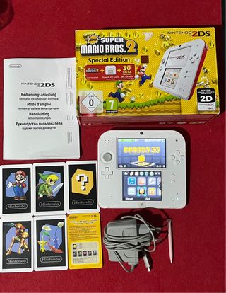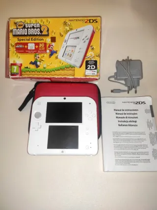 Console Nintendo 2DS in edizione speciale di Super Mario Bros. 2.✔️ - Gioco Mario Kart 7 e Super Mario Bros 2 preinstallati.✔️ - Include 30 sfide extra di All Coin Rush.✔️ - Console in colore bianco e rosso.✔️ - Stilo per navigare nei menu originale.✔️ (È possibile vedere e provare senza impegno)‼️La console non include il caricabatterie‼️