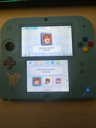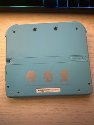 Consola Nintendo 2DS in colore blu, con un design speciale ispirato a Pokémon. Come si vede nelle foto, l'adesivo del pulsante home è stato rimosso, rendendo difficile premere il pulsante home. Il joystick è privo di gomma ma funziona. A volte i cartucini, quando si cerca di rimuoverli, rimangono bloccati e occorre fare leva con un oggetto per rimuoverli. Tuttavia, come si vede nell'immagine con l'esempio di 'Inazuma Eleven', la console legge i cartucini.