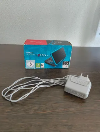 Console portatile Nintendo 2DS XL in colore blu. Include caricabatterie. - Grandi schermi. - Include adattatore di corrente.