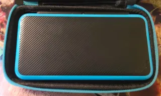 Console portatile Nintendo New 2DS XL in colore blu e nero. Include custodia protettiva. Design con finitura in fibra di carbonio sul coperchio. Bordo blu brillante. Include caricabatterie Nintendo, anche se non è quello originale fornito con la console. PREZZO NON TRATTABILE!