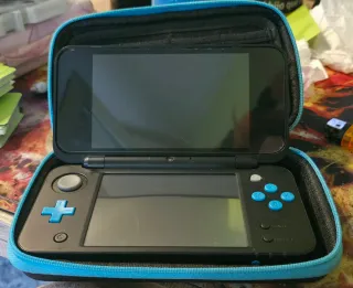 Console portatile Nintendo 2DS XL. - Colore blu e nero. - Design pieghevole. - Caricatore originale.