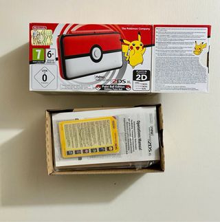 Console portatile Nintendo 2DS XL con un design speciale di Pokeball. Colore rosso vibrante. Edizione da collezione. Include scatola originale e custodia originale Pokémon in regalo (quella fornita con l'acquisto della Nintendo).