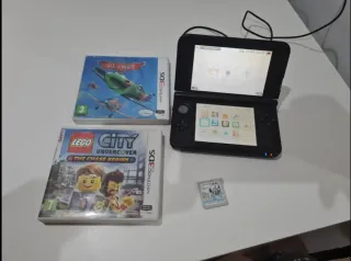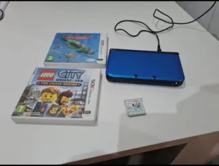 Console portatile Nintendo 3DS XL in colore blu. Include due giochi: Lego City Undercover: The Chase Begins, Planes dei Cars e Nintendo Pets. Inoltre, fornisco altri giochi dei Cars e la scheda per inserire la microsd e aggiungere giochi.