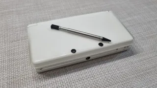 Console Nintendo 3DS XL in bianco, con vinile di cuccioli e protezioni per gli schermi. Include: - Scatola con istruzioni - Caricatore originale - 2 penne - 3 giochi e uno preinstallato - Custodie per protezione e trasporto - Entrambi gli schermi con protezioni - Scheda di memoria da 4GB Funziona perfettamente, manca solo il pulsante joystick ma non influisce sul gioco.