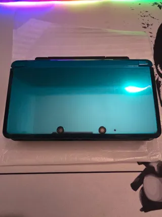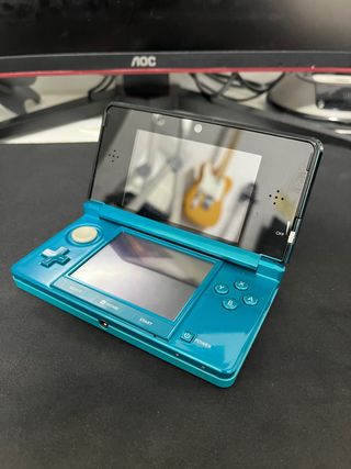 Nintendo 3DS Blu Acqua. Buono stato e funzionale. Include caricatore generico e stilo. 🌍 Region Free: compatibile con giochi di Europa, America e Giappone. Console di seconda mano con lievi segni d'uso: piccole macchie sulla scocca, usura della gomma del circle pad (vedi foto), protezione dello schermo applicata (punti visibili sulla superiore, possibile sporco, non rimossa; punto più luminoso sulla inferiore), leggero ingiallimento dello schermo, tipico del modello. 🚚 Spedizione tramite Wallapop o Bizum + 6 € di spedizione certificata. 📸 Venduto come mostrato nelle foto.