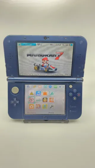 Console portatile Nintendo 3DS XL in colore blu. - Schermo superiore da 4,88 pollici. - Schermo touch inferiore da 4,18 pollici. - Fotocamera posteriore doppia. - Caricatore incluso. Ascolto offerte