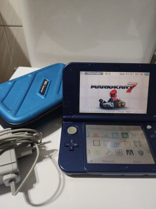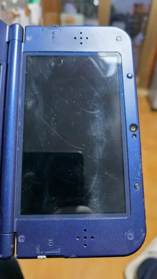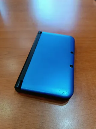 Console portatile Nintendo 3DS XL in un colore blu metallizzato. Include il suo stilo e 3 giochi. Funziona perfettamente, viene con il caricatore, non ha errori e presenta solo lievi graffi quasi invisibili sul retro e sulla parte anteriore. Design pieghevole. Schermo superiore più grande.