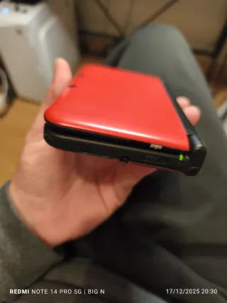Nintendo 3DS in colore rosso in buone condizioni. La vendo perché voglio acquistare una New 3DS. Molto ben curata, anche se l'ho acquistata un tempo da un privato e ha piccoli difetti sul telaio e sul retro (visibili nelle ultime foto). Il connettore audio non funziona bene (si sente solo il lato sinistro). Lo schermo superiore è in perfette condizioni. Ho sostituito la protezione in plastica originale con una in vetro, migliorando leggermente la visualizzazione. Lo schermo inferiore presenta segni d'uso, ma nulla che influisca sull'esperienza. Il connettore di ricarica funziona. Include caricatore, dock ufficiale e connettore USB-C per sostituire quello originale.