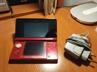 Console portatile Nintendo 3DS in un accattivante colore rosso e nero. Perfetta per portare i tuoi giochi preferiti ovunque tu vada. Con stilo originale incluso che si inserisce all'interno della console (come si vede nella foto). Tutto funziona perfettamente (schermo, 3D, fotocamera, pulsanti, connessioni...). Il caricatore è incluso per 10€ in più. Inoltre, tutti i giochi che desideri a 5€ ciascuno. Design pieghevole. Schermo superiore e touch screen inferiore.