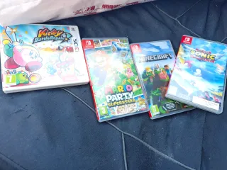 4 scatole originali per Nintendo Switch e 3DS. SOLO LE SCATOLEEEE!!! E istruzioni. Scatola console con cartoni interni. - Kirby Battle Royale (3DS) - Mario Party Superstars (Switch) - Minecraft (Switch) - Team Sonic Racing (Switch)