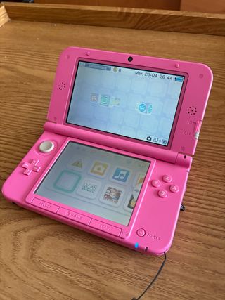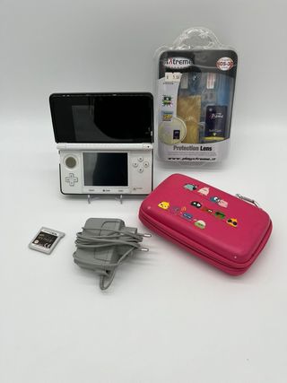 Console portatile Nintendo 3DS in colore rosa. Ideale per portare i tuoi giochi ovunque. Include caricatore e scatola originale. Schermo superiore 3D. Schermo touch inferiore con alcune tracce d'uso. Pulsanti di controllo direzionale e tasti azione.