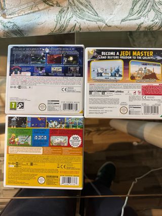 Vendo lote de juegos originales para Nintendo 3DS y DS, solo cartucho. Todos probados y en perfecto estado. 3DS: • Pokémon Zafiro Alfa (EUR, multilenguaje) • Yo-Kai Watch • Yo-Kai Watch 2: Psychic Specters • Yo-Kai Watch 2: Bony Spirits • Super Mario 3D Land • Mario & Sonic en los Juegos Olímpicos de Río 2016 • LEGO Hobbit DS: • New Super Mario Bros. (USA) • Pokémon Edición Blanca 2 (PAL-ITA, ITA) • Mario & Sonic en los Juegos Olímpicos de Londres 2012 Precio a partir de 5€, descuento por compra en lote. Envío rápido y seguro. Contacta para info o fotos.