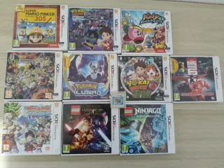 Lote di Giochi Nintendo 3DS: Pokemon Luna 25, Yokai Watch 1 (senza scatola) 10, Yokai Watch 2 Fantascheletri 25, Yokai Watch 2 Menteespiriti 25, Dragon Ball Fusions 20, Kirby Battle Royale 15, Lego Ninjago 10, Lego Star Wars 10, Big Hero 6 5, Super Mario Maker 20, Dragon Ball Z Extreme Butoden 20