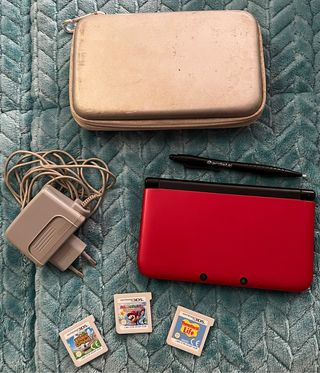 Console portatile Nintendo 3DS XL in colore rosso, ideale per portare i tuoi giochi ovunque. - Custodia rigida per il trasporto (mostra segni di usura esterni dovuti agli anni ma è in ottime condizioni) - Caricabatterie (originale Nintendo e a carica rapida) - Stilo touch (acquistato separatamente e funziona perfettamente) - Giochi: Mario Kart island tour, Tomodachi Life, Animal Crossing: New Leaf.