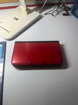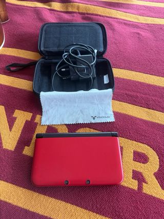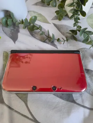 Console portatile Nintendo 3DS XL in colore rosso. Include caricatore e custodia. - Schermo superiore e inferiore. - Tasti di controllo direzionale e tasti azione. - Slot per scheda di gioco. - Porta per cuffie.