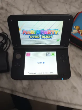 Console portatile Nintendo 3DS XL in colore nero. Include il gioco Mario Party Star Rush e altri 41 giochi. - Schermo superiore e inferiore. - Pulsanti di controllo direzionale e di azione. - 42 giochi - Caricatore (non originale) - Custodia Mario Bros