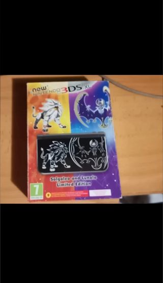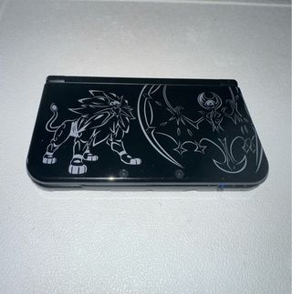 Console portatile Nintendo 3DS XL con un design speciale ispirato a Pokémon Sole e Luna. La custodia presenta grafiche dettagliate dei Pokémon leggendari Solgaleo e Lunala. - Protezioni per entrambi gli schermi. - Scatola e manuale di istruzioni. - Carte AR non aperte. - Design esclusivo Pokémon Sole e Luna. - Custodia nera con dettagli bianchi. - Include caricabatterie originale.