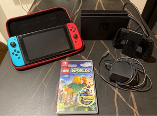 Console Nintendo Switch con accessori e gioco. Include console, dock, controller e caricabatterie. Gioco: LEGO Worlds. Scheda microSD da 64GB. Custodia ufficiale Nintendo Mario Odyssey. Pagamento: Bizum, bonifico o consegna a mano (preferibilmente a mano). Spedizione: GLS 24H per 8€ o spedizione Wallapop con 1€ nel prezzo, il resto del pagamento con i metodi sopra indicati.