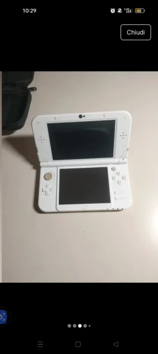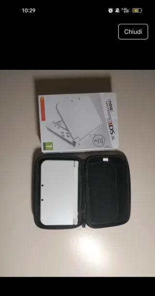 Console Nintendo 3DS XL di colore bianco. - Modello XL con schermo più grande. - Include custodia protettiva nera. Scatolo molto rovinato, la console in buone condizioni e funzionante
