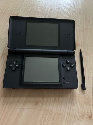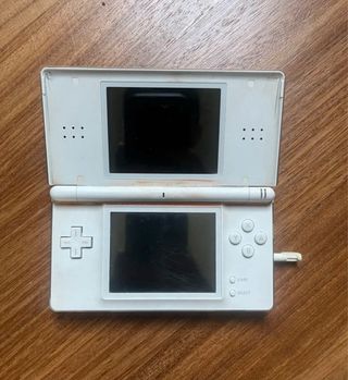 Nintendo DS Lite Nera. Presenta i tipici graffi d'uso sullo schermo touch, visibili nelle foto, e due segni sullo schermo superiore, ma non influiscono sull'uso. Un angolo è rotto, come si vede nelle foto, ma non influisce sull'uso. Funziona tutto. È possibile giocare a giochi DS e Game Boy, le slot per le cartucce funzionano perfettamente. Si solleva leggermente, non si chiude del tutto, ma è solo 1 o 2 mm quello che rimane aperto, come si vede nelle foto. Include caricabatterie. Spedizione disponibile.