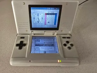 Console portatile Nintendo DS originale in color argento. Funziona perfettamente, nessun problema con gli schermi, qualche graffio sullo schermo inferiore. Include stilo e caricabatterie originale. Funzionano il suono, i pulsanti, il touch screen e lo schermo è stabile. DS Lite vintage