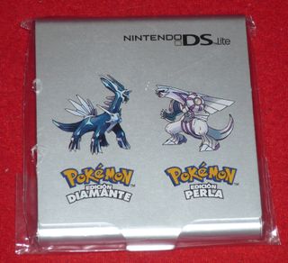 Scatola in alluminio per Nintendo DS Lite con design Pokémon. Nuova, mai aperta, nella sua confezione di plastica. Design frontale con i Pokémon Dialga e Palkia. Include i loghi di Pokémon Diamante e Perla. Finitura argentata metallizzata. Ritiro a Madrid o spedizione tramite Wallapop.