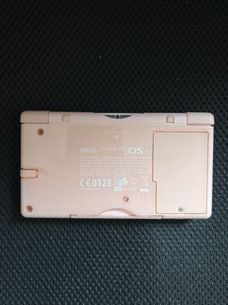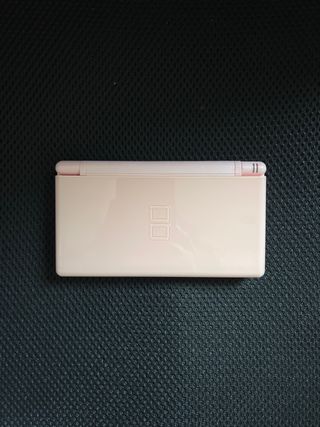 Console portatile Nintendo DS Lite in colore rosa pastello. Schermo superiore e inferiore. Tasti di controllo direzionale e tasti azione. Slot per cartucce di gioco. (Include cartuccia con 16 giochi.) Caricatore non originale.