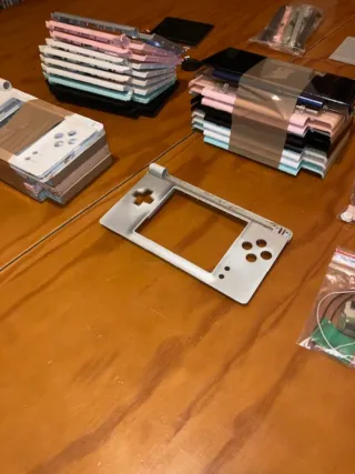 Consegna di parti per console Nintendo DS. Include: - Carcasse di vari colori: rosa, bianco, blu chiaro, nero e grigio. - Componenti interni ed esterni. - Ideale per riparazioni o personalizzazione. Nessuna restituzione accettata per gli articoli inviati.
