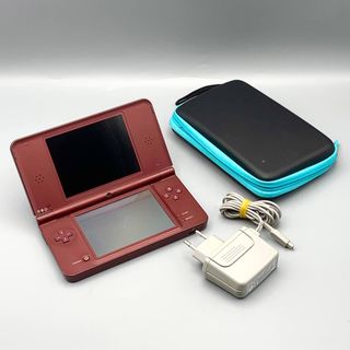 Console portatile Nintendo DSi XL in colore rosso. Include caricabatterie e stilo touch.