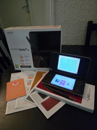 Console Nintendo DSi XL in colore nero. Include vari manuali e guide. Console Nintendo DSi XL. Lo schermo inferiore presenta un piccolo segno di usura. Stilo touch. Manuali utente e guide rapide. Caricatore *Carica correttamente*